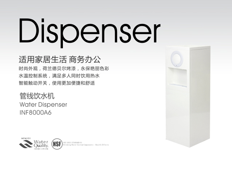 Alikes管線機(jī)可配合終端凈水機(jī)使用,也可以利用自帶的濾芯(選配)進(jìn)行水處理凈化。凈化后的水經(jīng)PE輸水管連接到機(jī)內(nèi)的密閉儲(chǔ)水罐,通過(guò)加熱和冷卻裝置處理成熱水、冰水或常溫水。管線飲水機(jī)作為家居水處理裝置中的一種產(chǎn)品,能為別墅、大戶型住宅、商務(wù)會(huì)議以及日常家用提供非常便捷清潔的飲用水。